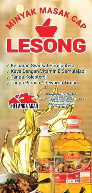 Minyak masak sawit tulen asli keluaran bumiputera dan dijamin halal.